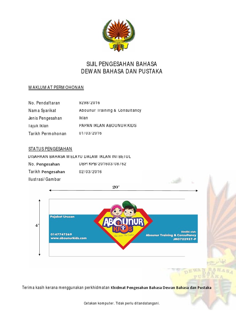 Sijil Kebenaran Iklan Dari Dbp Pdf